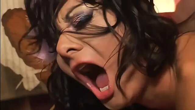 Sluttish actress Sandra Romain gets on her knees and deep-throats a massive cock. She bounces on him in reverse cowgirl, showing off her natural small boobs and shaved pussy. He blasts his cum down her throat, and she swallows it all.