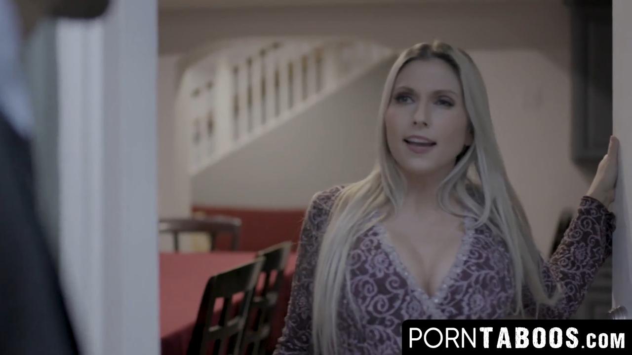 Sexy blonde MILF Christie Stevens has a huge appetite for big cock. She sucks it, rides it in cowgirl, and gets banged in missionary. She moans loudly as he pounds her into the bed and cums with a big creampie.