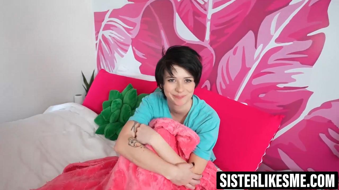 Austin Pierce plays the stepbro and seduces his teen sister Kitty Lynn with her tattoos and big natural perky tits. He gives her a deepthroat blowjob while she grinds on him cowgirl, then they switch to missionary for hardcore sex. He cums all over her face and gives her a creampie.