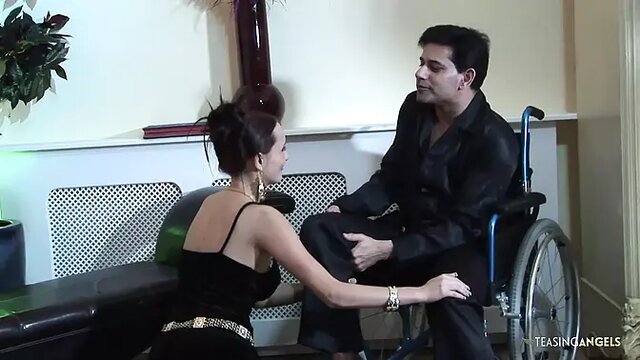 Wheelchair-bound hubby double pens brunette slut