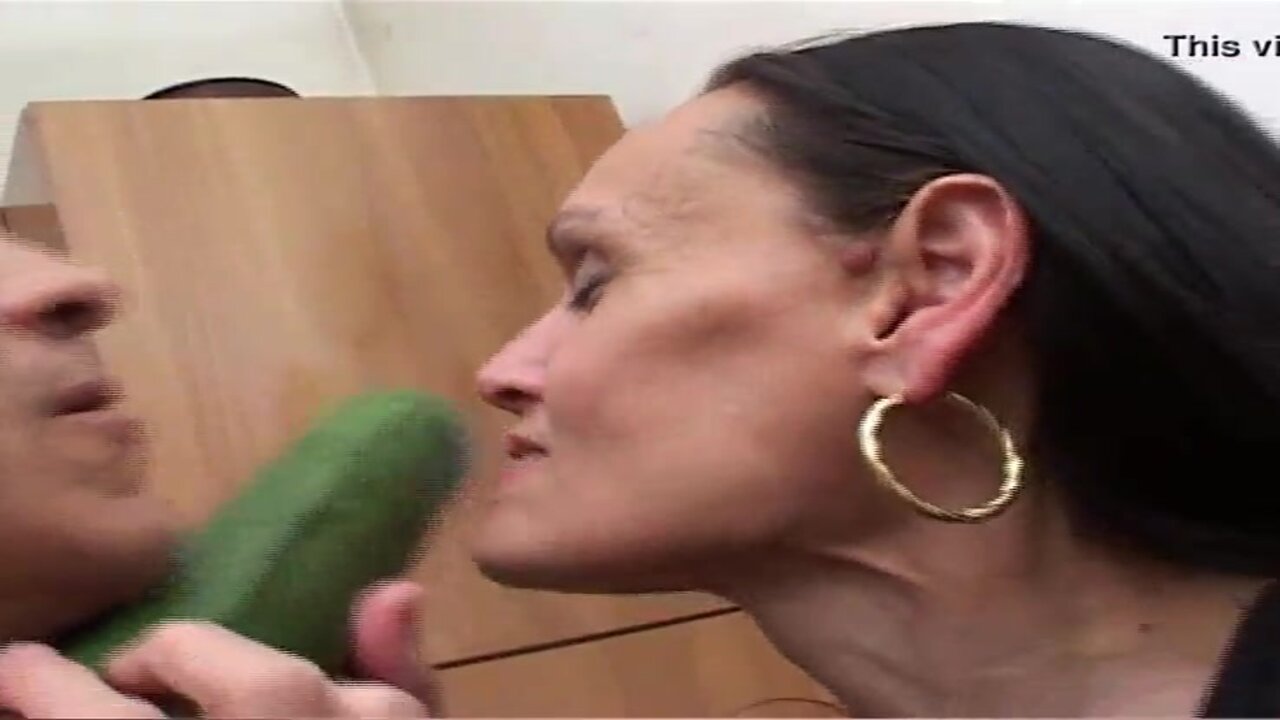 Mature older woman gets wild with a courgette and a huge shaft. She takes it to the hilt, moaning with pleasure. He jizzes all over her face as she laughs at the absurdity of it all. Output: Mature milf gets wild with a courgette and a big cock. She takes it deep, moaning with pleasure. He cums all over her face as she laughs at the absurdity of it all.